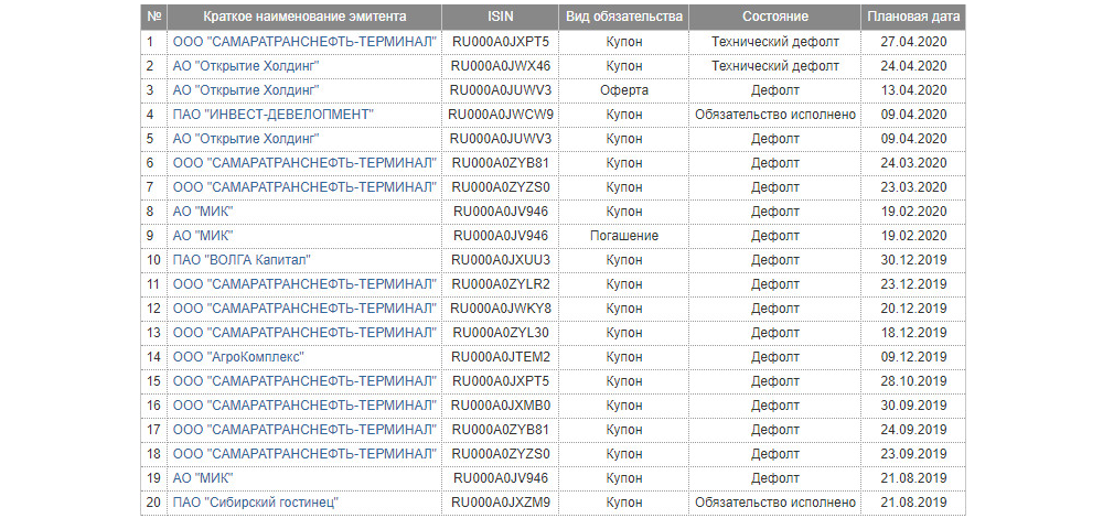 Всего несколько компаний исполнили обязательства, в основном был объявлен дефолт