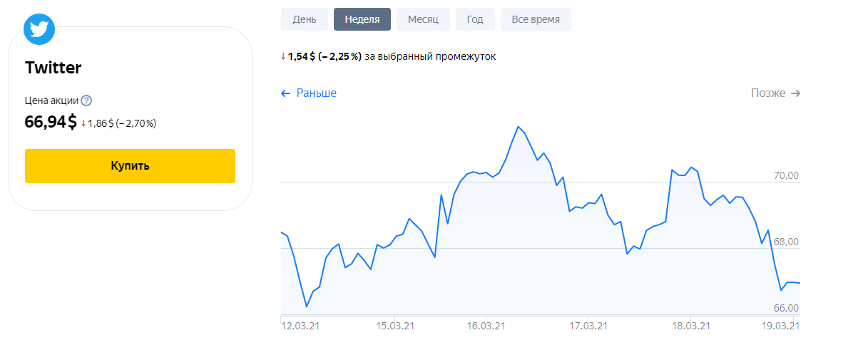 За неделю стоимость акций Twitter выросла на 5$ за одну — можно было заработать 7,5% от капитала