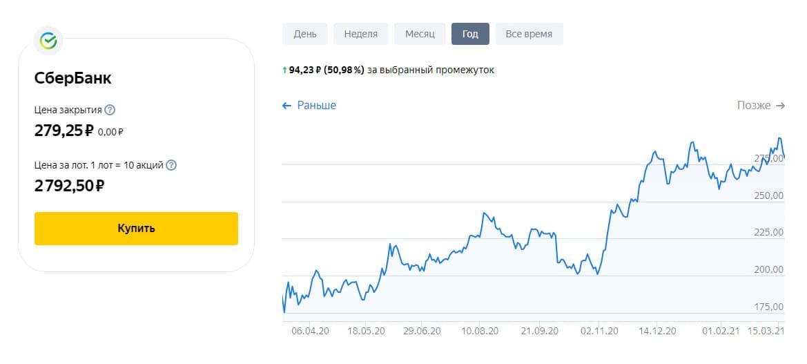 Например, стоимость акций «Сбербанка» за год выросла более, чем на 50%